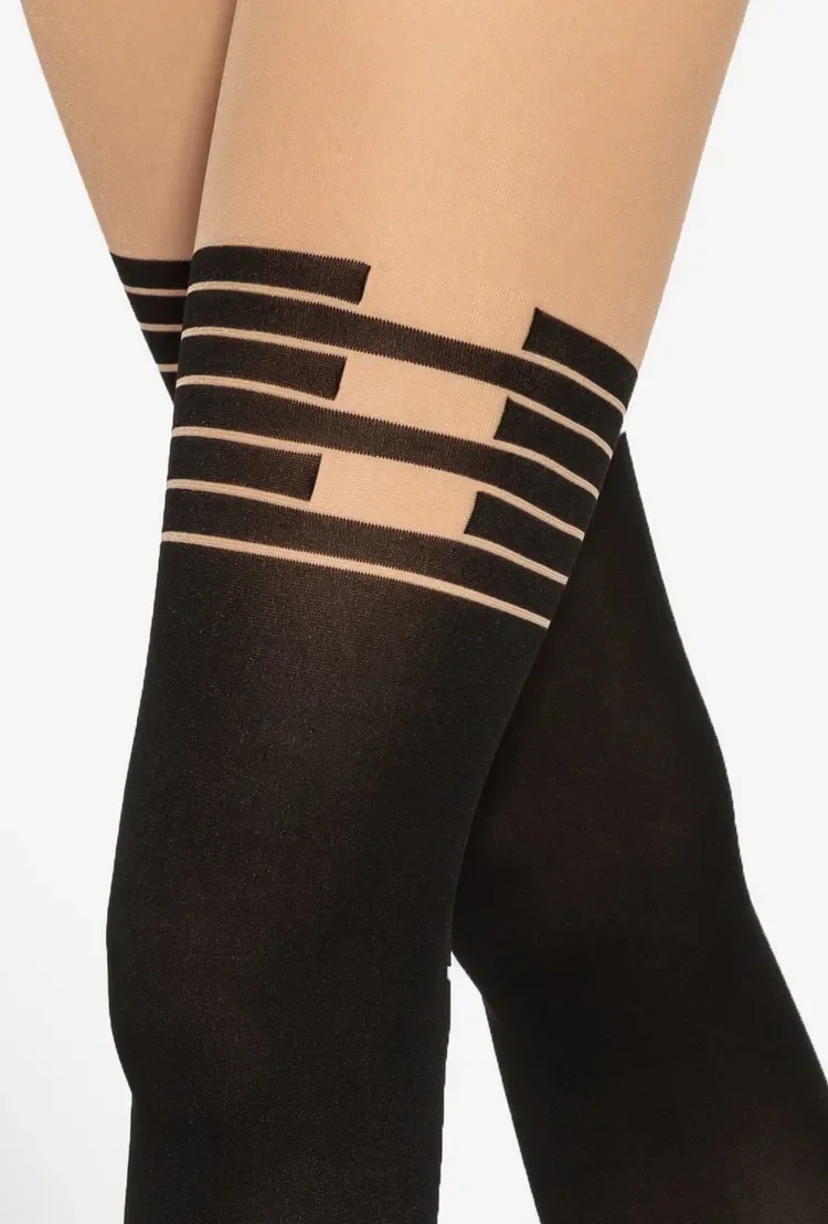 Panty's met een kousen-look zullen je vanaf het eerste moment betoveren! Het broekgedeelte van 20 denier in een huidkleurige T-Band - stijl combineert met het oderste deel van 60 denier. Een accesorie dat je outfit direct naar een hoger niveau tilt.
